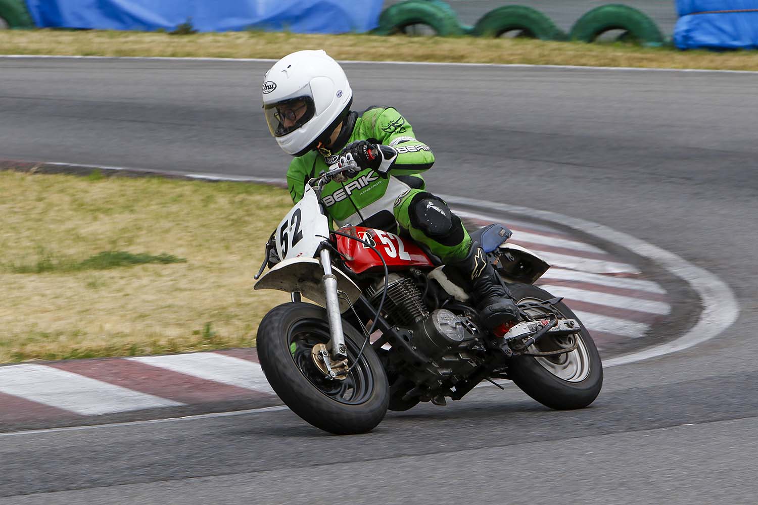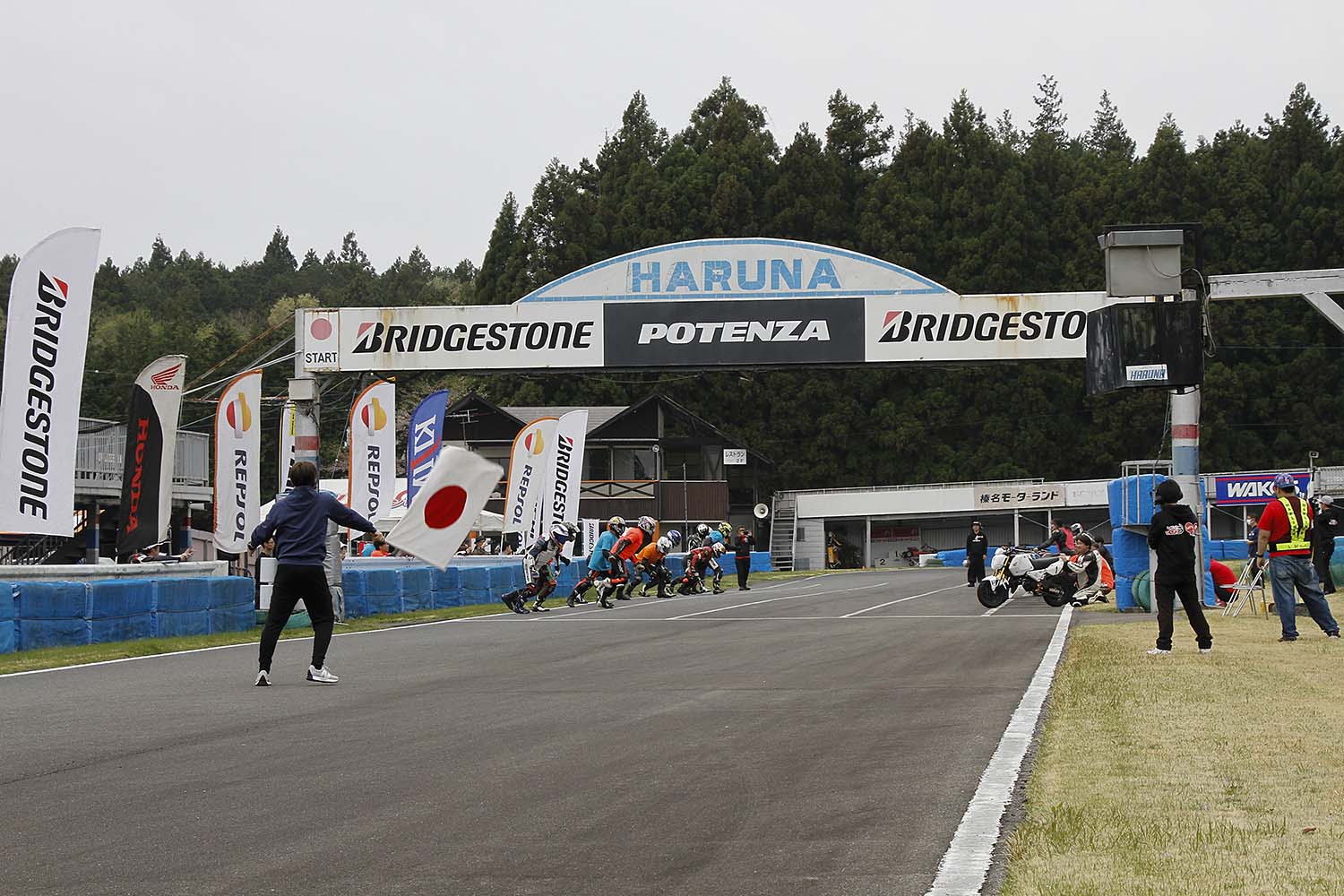 青空が広がる春の一日、群馬県・ハルナモータースポーツランドで開催された今大会。気温25℃、湿度も低く、まさに『耐久レース日和』の中、『Let’sレン耐150分耐久レース』が幕を開けました。Grom5・Grom4・エイプ100の3クラスに加え、事務局に認められたマイスタークラスも参戦。
