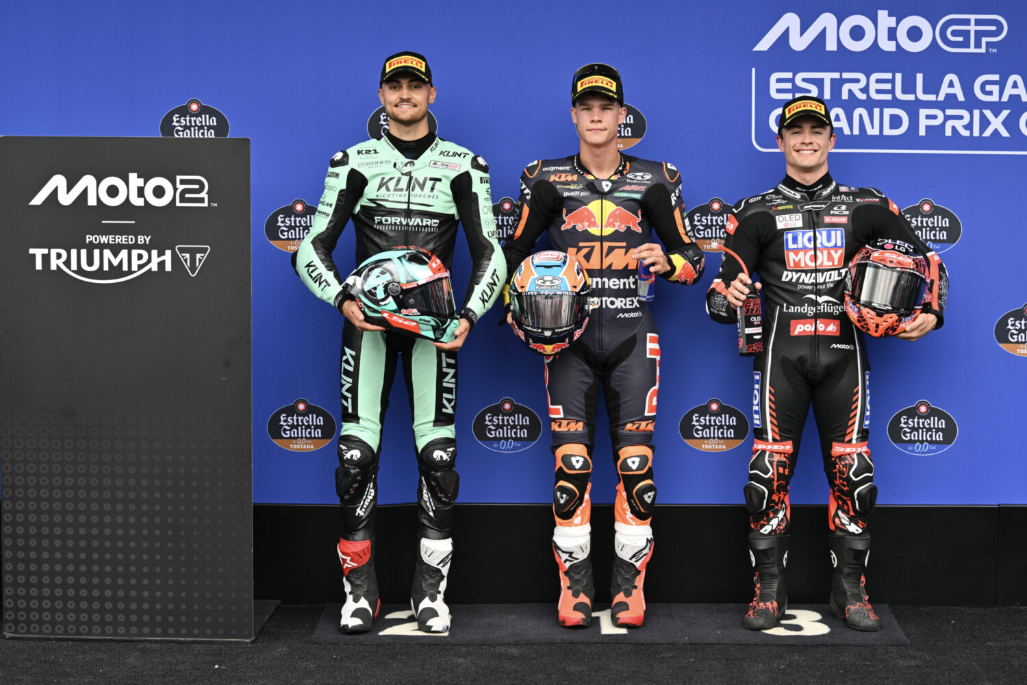2番手以降は、激しく入れ替わり、最後は2番手ダビド・アロンソ(カレックス)1分34秒946、3番手マルコス・ラミレス(カレックス)1分35秒182、4番手イバン・オルトラ(ボスコスクーロ)1分35秒191。以上の4名がQ2進出を果たした。転倒後の4周目に1分35秒490を記録した佐々木は9番手、國井は7周目に1分35秒879を出し11番手だった。