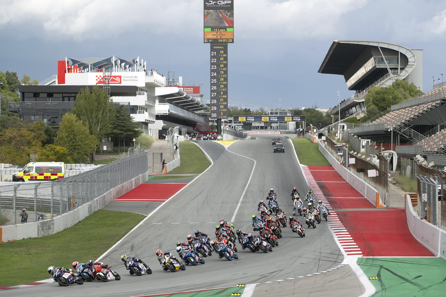 アレックス・エスパロガロが16コーナー進入時に転倒し、フランコ・モルビデリを巻き込んだ事故が発生。コースにオイルが散乱し、レースディレクターが赤旗を提示した。3周が完了しなかったため、スタートグリッドは元の状態に戻り、レース開始時に転倒したライダーたち(前述の2人にマルケス兄弟が加わり、1周目と2周目で転倒したライダーたち)がレースに再参加する機会を得た。マルクが後に語ったように「今日は誰かが私に第二のチャンスをくれた」