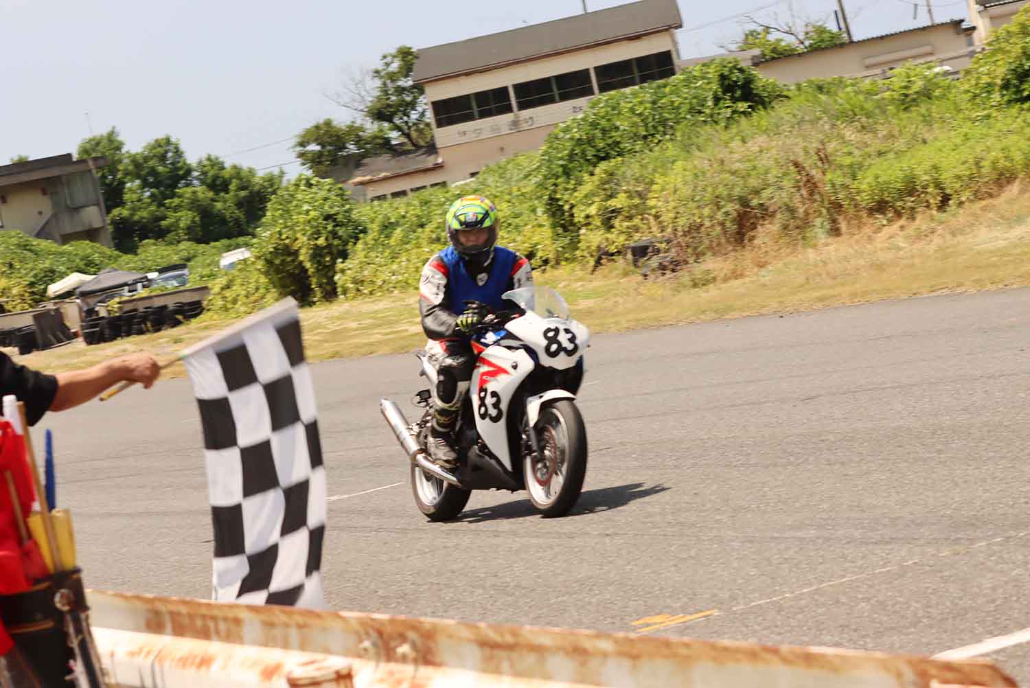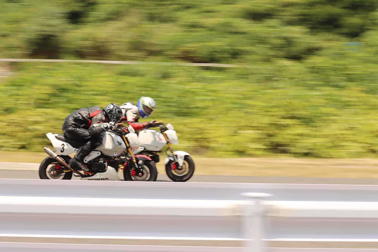 Grom5は#3『うまソーダロック』がトップチェッカー。総合2位にはCBR250クラスの#83『チーム旬』。