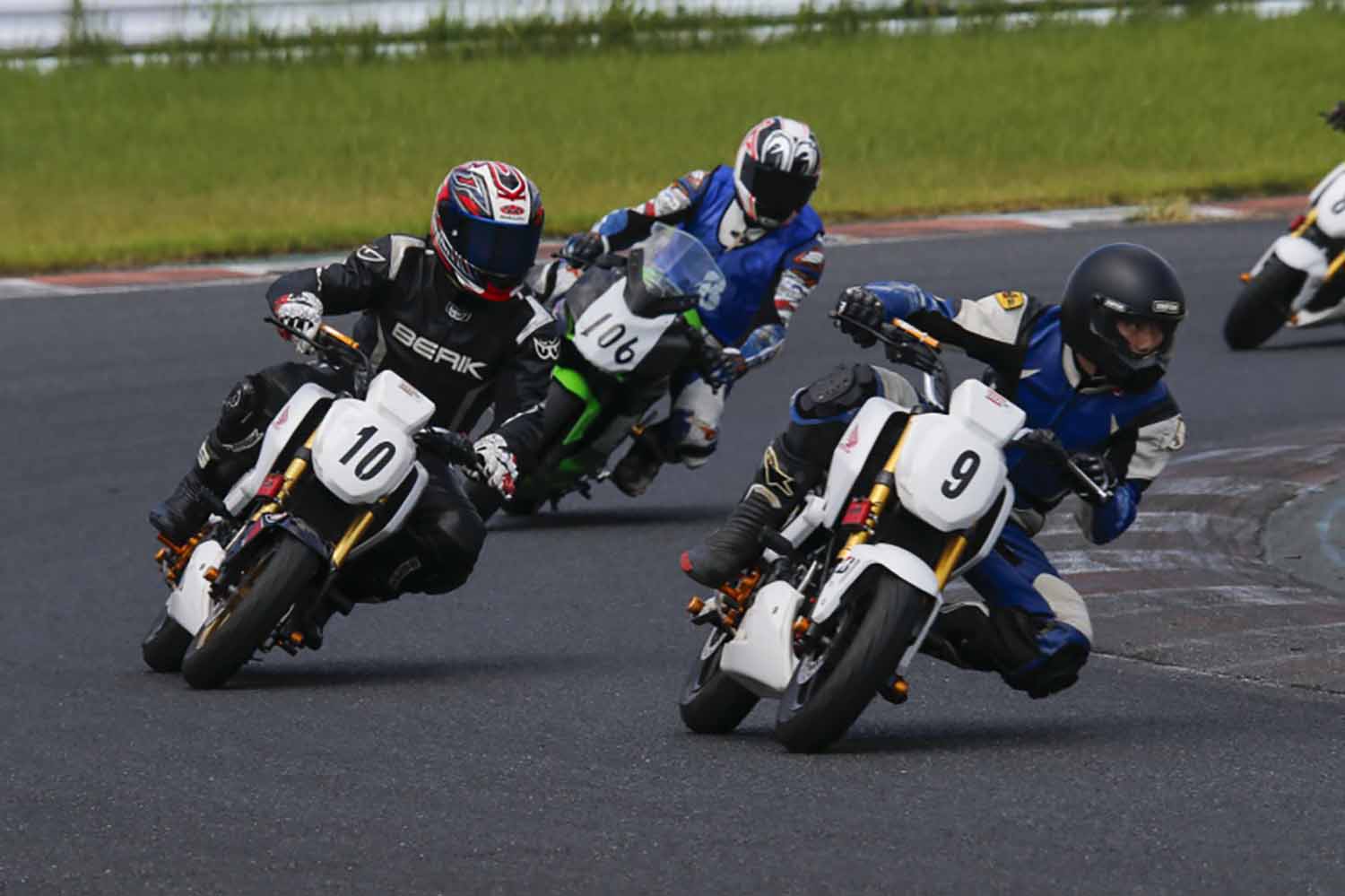 2時間目に入るが、前半はマイスタークラスとCBRクラスおよびグロム4クラスの上位3台はオーダーが変わらぬままレースは進行していく。