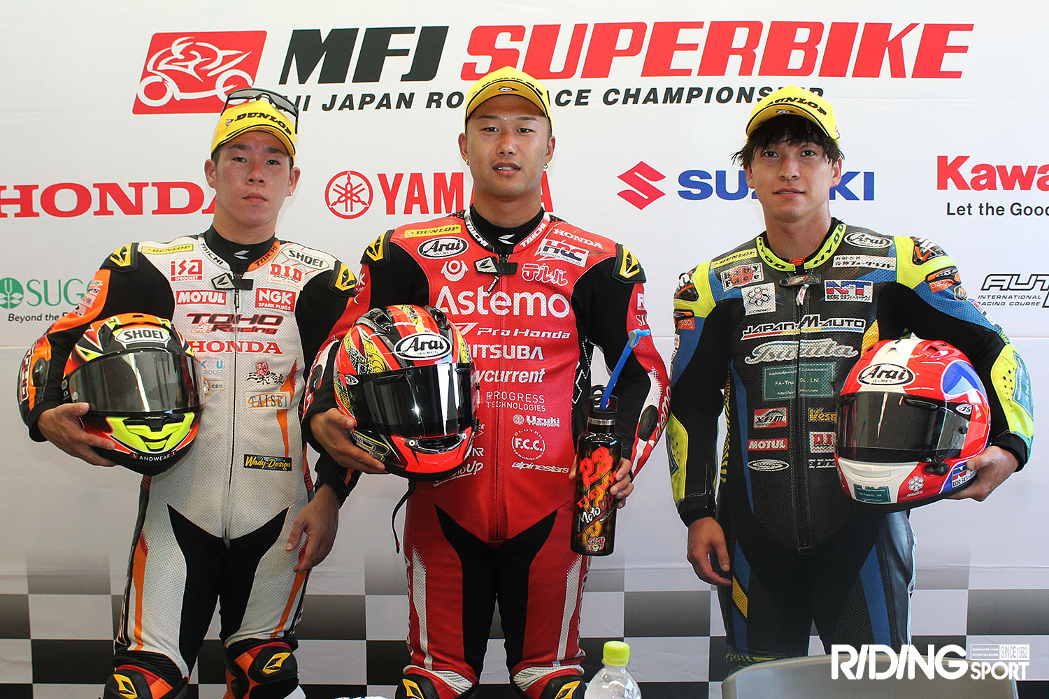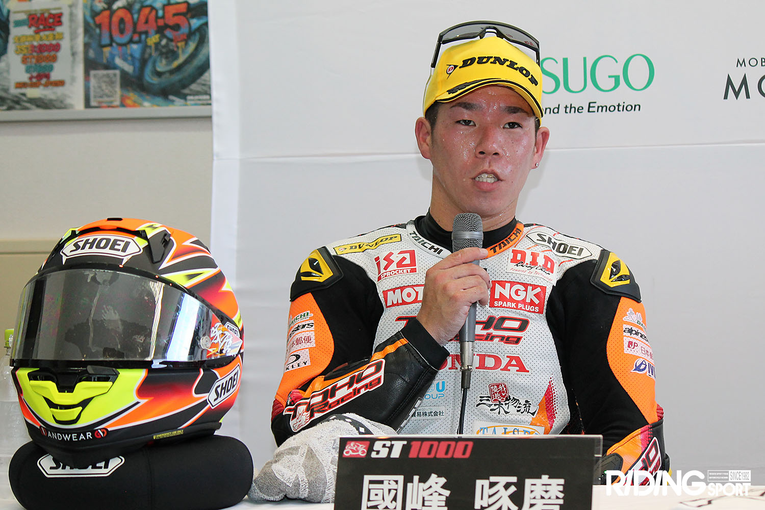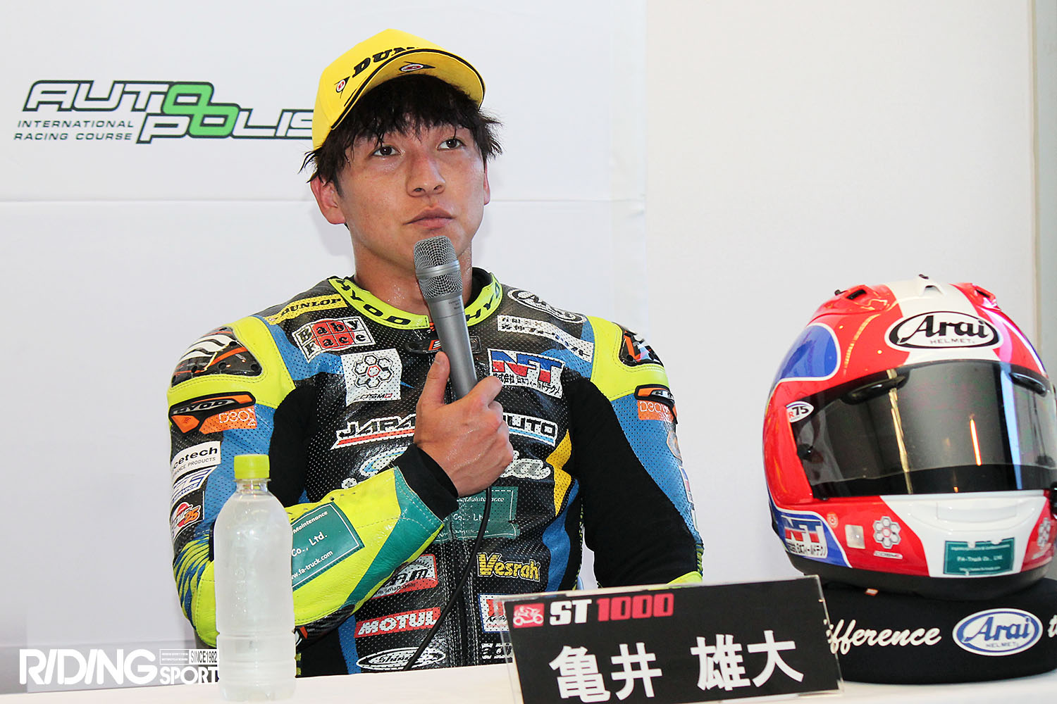 「戦略はありませんでした。西村選手が追い付いたのは確認していました。バックマーカーにひっかかったこともあって追い付かれ、一騎打ちだと思いました。残り5周くらいのところでリアブレーキのトラブルが出てペースを上げられなかったのですが、このペースならいけると思っていました。ラスト2周くらいで彼が転んだから楽な展開になりました。テストで一日だけドライで走ったのですが、ドライのセッティングや走り方が思い出せませんでした。テストよりもグリップしなかったので、その辺で苦労しました」
