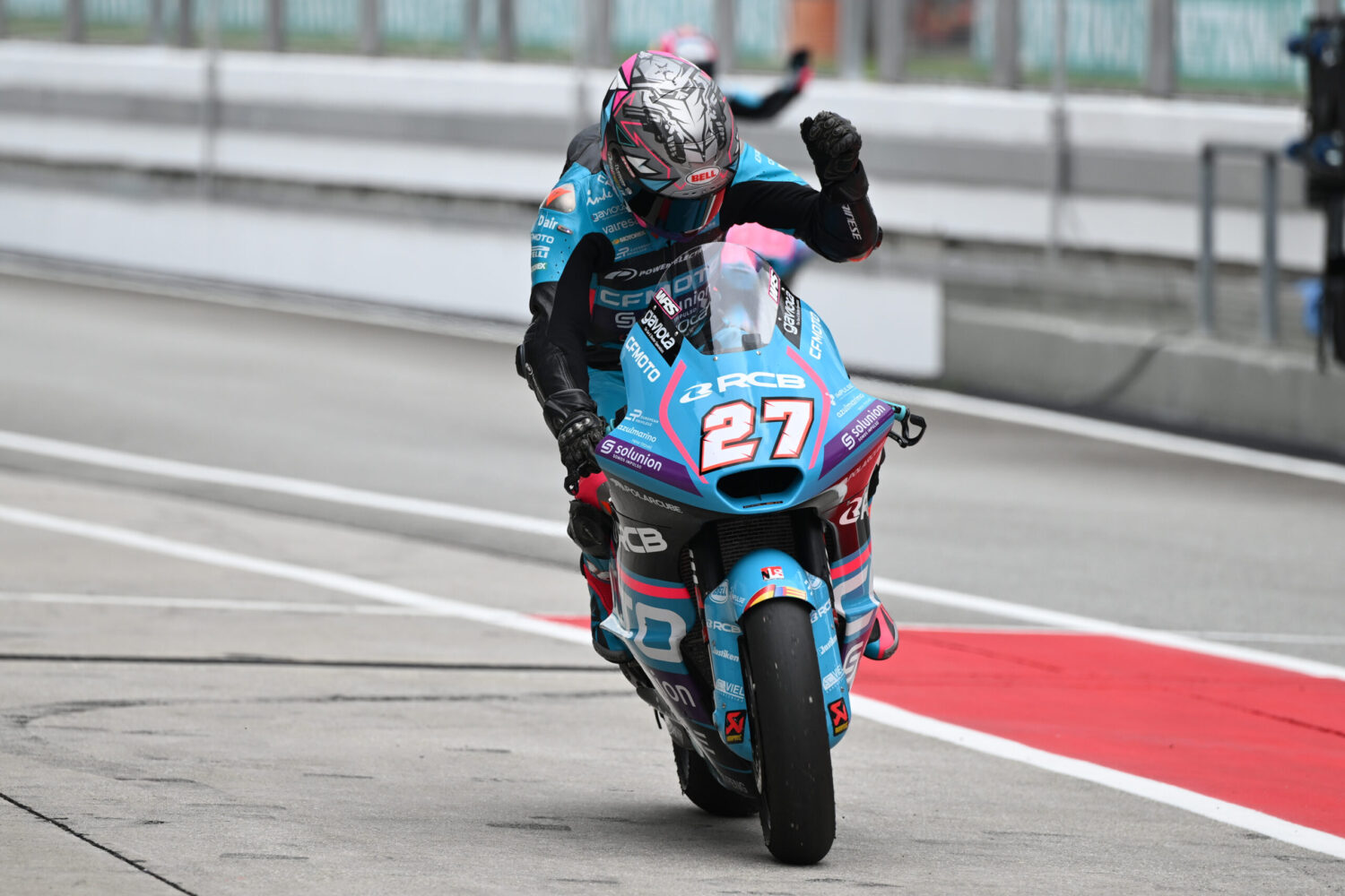 MotoGP第20戦マレーシアMoto2クラス2日目、フリー走行2と予選が土曜日、マレーシア、ペトロナス・セパン・インターナショナル・サーキットで開催された。日本時間午前10時25分(現地時間午前9時25分)から30分行なわれたフリー走行2は、気温27度、路面温度29度、湿度81%、曇りのドライコンディション。この走行では、ジェイク・ディクソン(ボスコスクーロ)が自身の昨日出したコースレコードを更新、2分03秒633でトップタイムだった。2番手はアロン・カネト(カレックス)2分03秒642、3番手ダニエル・ムニョス(カレックス)2分03秒680。