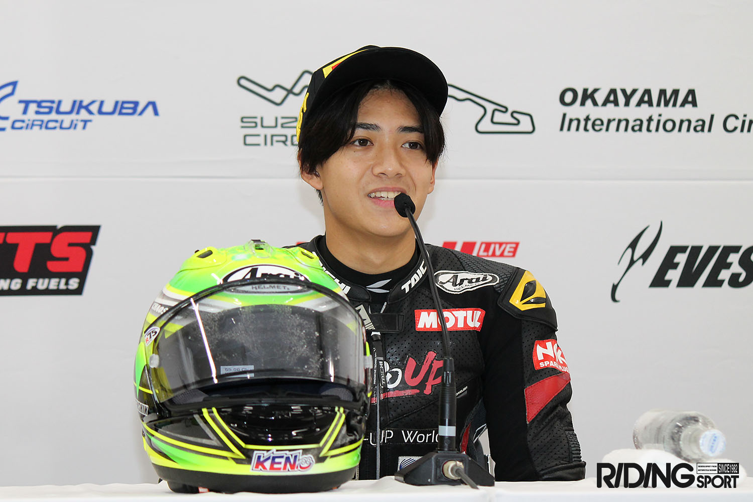 「最後尾グリッドからのスタートとなってしまったので、2位で終えられたのは非常によかったと思います。ウオームアップ走行でも中谷選手が非常に速いペースだったので、自分にできるのは表彰台、もしくは2位かなと思いました。できる限りのことはできました。中谷選手がMiniGPに参戦していたころはアドバイザーという立場でした。悔しくもあり、うれしくもあります。今日は中谷選手の健闘をたたえたいです」