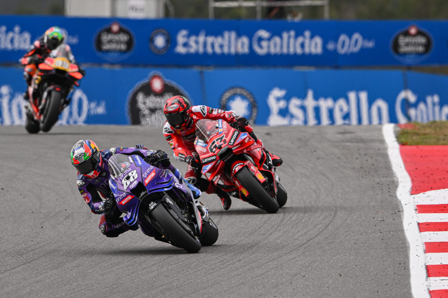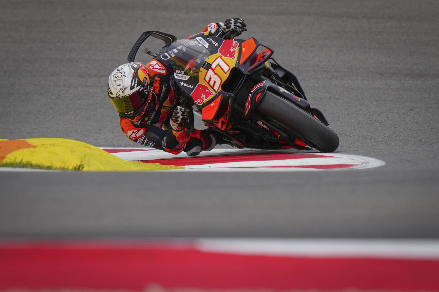 MotoGP第21戦ポルトガルMotoGPクラス1日目、フリー走行1とプラクティスが金曜日、ポルトガル、アウトードロモ・インテルナシオナル・ド・アルガルヴェ、通称ポルティマオ・サーキットで開催された。日本時間午後7時45分(現地時間午前10時45分)から45分間行なわれたフリー走行1は、気温19度、路面温度23度、湿度58%、雨がぱらつくドライコンディション。開始まもなく、2コーナーでマーベリック・ビニャーレス(KTM)の代役、ポル・エスパロガロ(KTM)が転倒。更に、終盤1コーナーでラウル・フェルナンデス(アプリリア)が高速で転倒。頭を打ってCTスキャンを撮る程だったが、大事には至らずプラクティスには参戦できた。