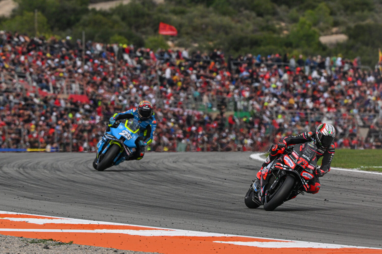 3周目ジャンアントニオをパスして3番手に上がったフェルナンデスは、4周目1分29秒976のレース最速を記録。7周目には15番手前後に居た小椋藍(アプリリア)が転倒、リタイア。11周目にフェルナンデスはアレックス・マルケスも抜いて、2番手まで浮上。ダブル・ロングラップを消化したホルヘ・マルティン(アプリリア)はテストも控えているため、ケガの回復途中という事もあり15周でピットイン、リタイア。23周でマーベリック・ビニャーレス(KTM)もピットイン、リタイア。クアルタラロは11番手前後を走行中、6コーナーで24周目に転倒、リタイア。残り3周の25周でエスパロガロもピットイン、リタイア。