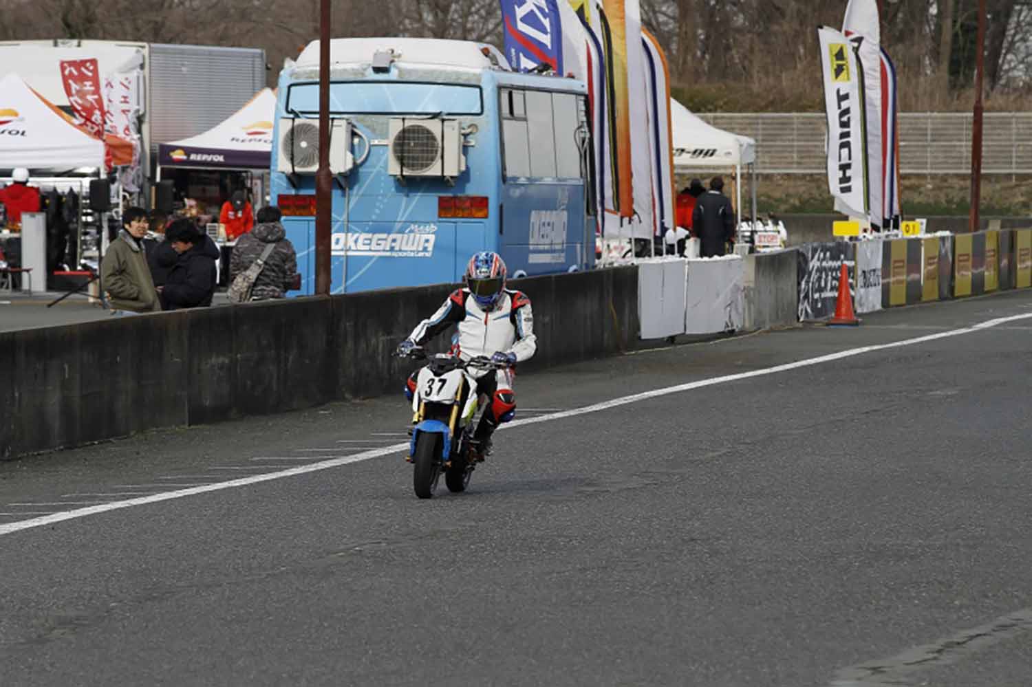 厳しい寒さと強風という厳しいコンディションの中、東日本シリーズ開幕戦は無事に終了した。初心者60分耐久レースではステップアップを目指す初心者ライダーたちの真剣な走りが、4時間耐久レースでは各クラスの激しい戦いと、転倒からも諦めずに立ち上がるチームの姿が印象的だった。