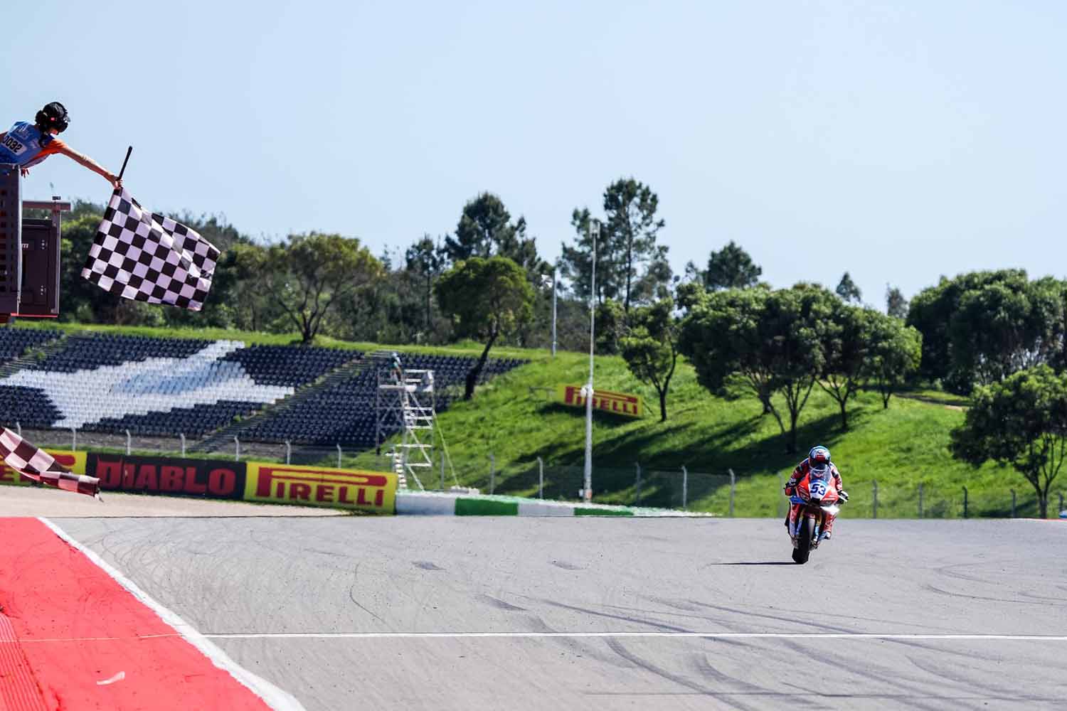 ニッコロ・ブレガとイケル・レクオナが、本日ポルトガルのアルガルベサーキットで開催された土曜日のレース1で、表彰台の1位と2位を占めた。ボルゴ・パニガーレのメーカーチームに所属する二人のライダーは、2.522秒差でゴールし、他を圧倒した。3位はBMWのミゲール・オリベイラだった。
