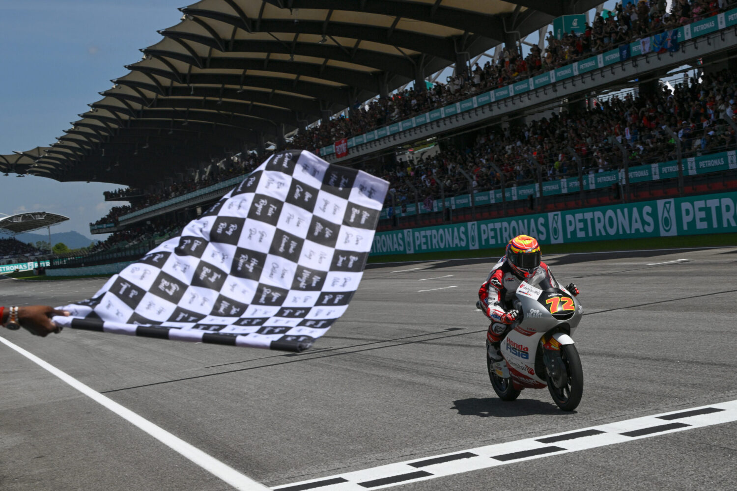 MotoGP第20戦マレーシアMoto3クラス2日目、決勝が日曜日、マレーシア、ペトロナス・セパン・インターナショナル・サーキットで開催された。日本時間午後1時(現地時間午後12時)から15周で開催される予定だった決勝は、サイティングラップの3コーナーで、ホセ・アントニオ・ルエダ(KTM)がノア・デッドウィラー(KTM)に激突。二人はドクターヘリで近隣の病院へ搬送される事故となり、レースは赤旗中断。ルエダは手の骨折と脳震盪があったものの、今は意識も高く、経過観察中。デッドウィラーも意識はあると伝えられた。